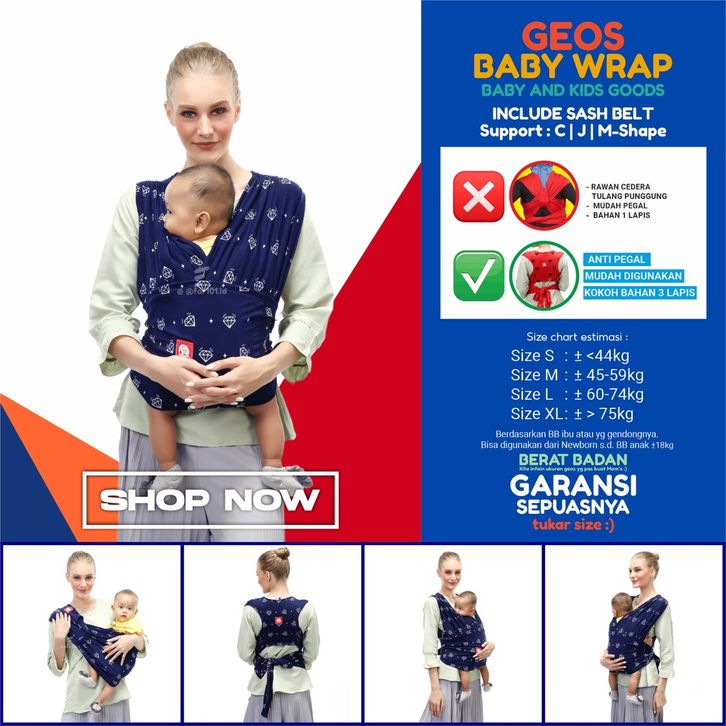 CIMOBABY Gendongan Bayi Depan Gendongan Bayi Samping Polos Motif Gendongan Anak Gendongan Kaos Geos BabyCimo