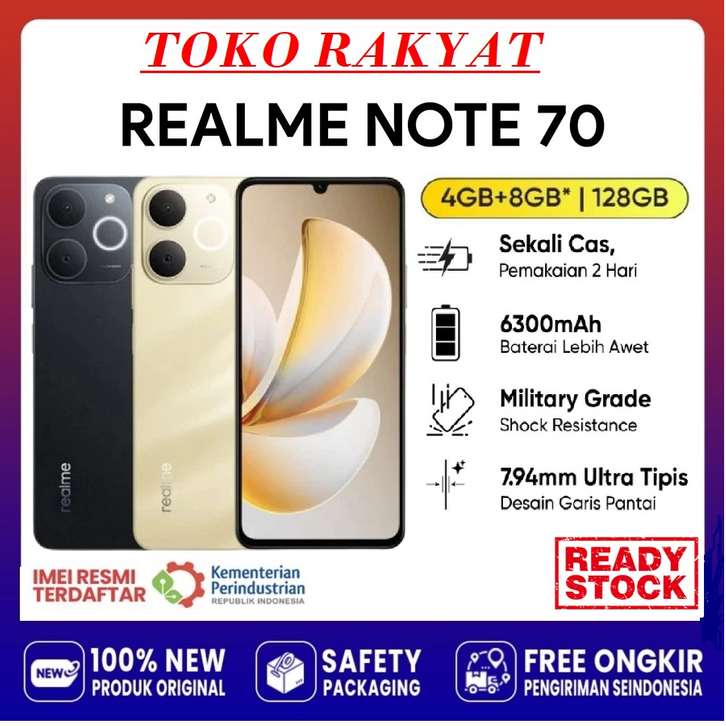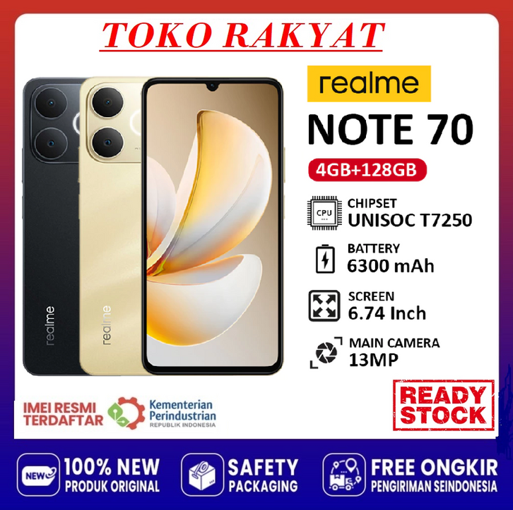 (BEBAS ONGKIR) Hp REALME NOTE 70 RAM 4+128GB | Unisoc Tiger T7250 | Camera 13MP | Batery 6300mAh