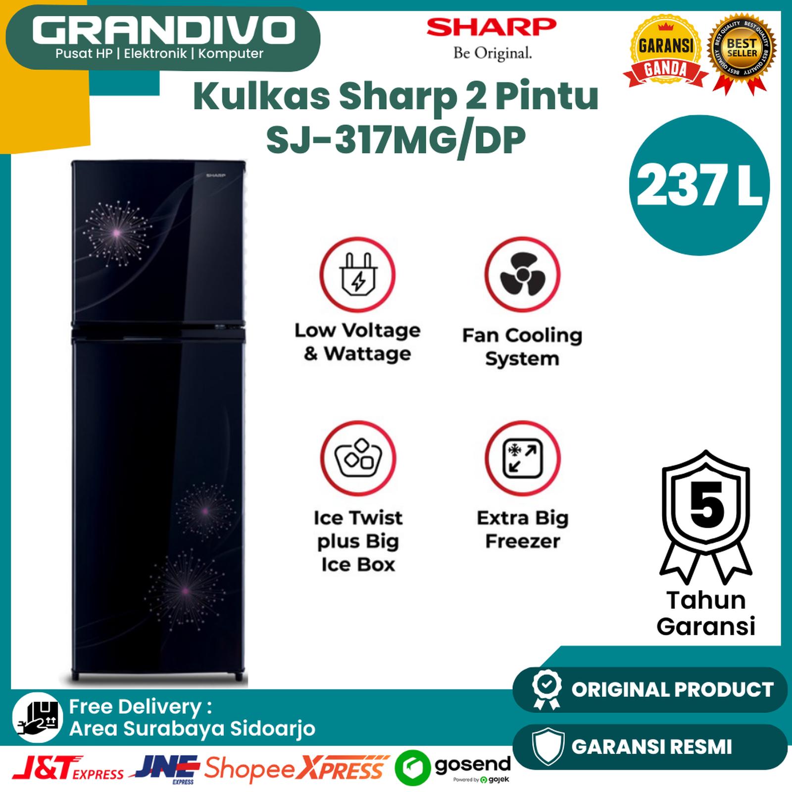 LEMARI ES SHARP 2 PINTU Jumbo [ 256 Liter ] SJ-317MG SHINE KULKAS SJ 317 MGDP MGDB Garansi Resmi - Grandivo