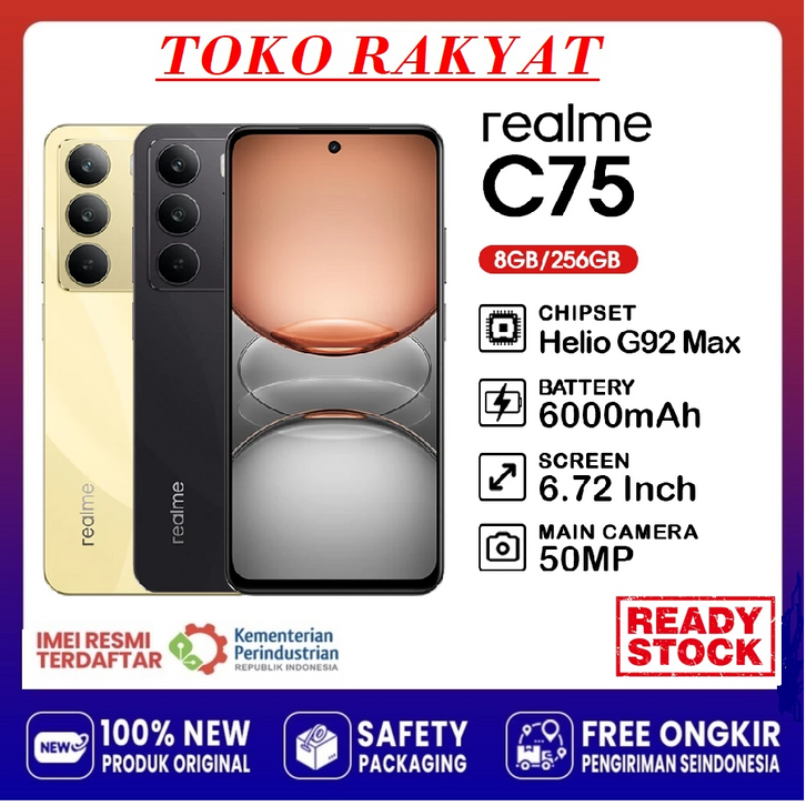 (BEBAS ONGKIR) Hp realme C75 Nfc 8+256GB | Mediatek Helio G92 | Camera 50MP | Batery 6000mAh 45W