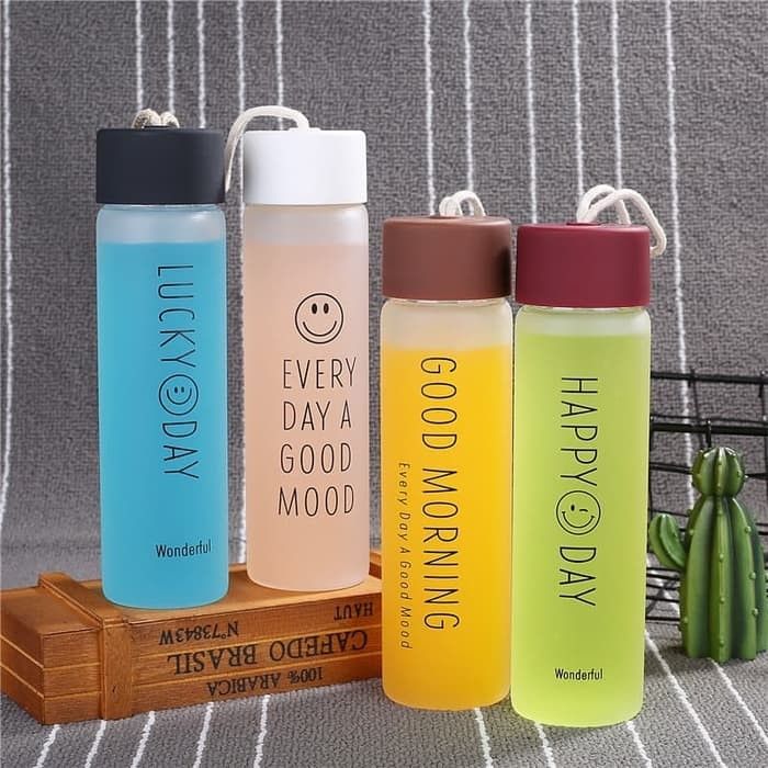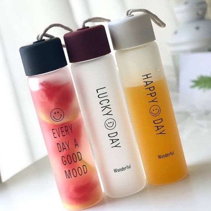 FREE ONGKIR /Botol Minum Smile Tempat Air Minum Motif Smile Bottle Lucky Day Good Mood [SS]