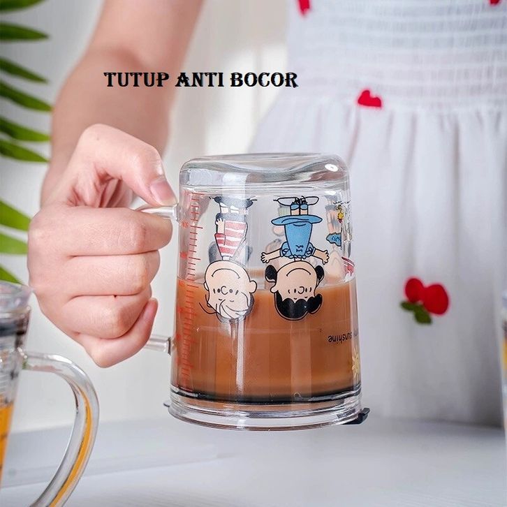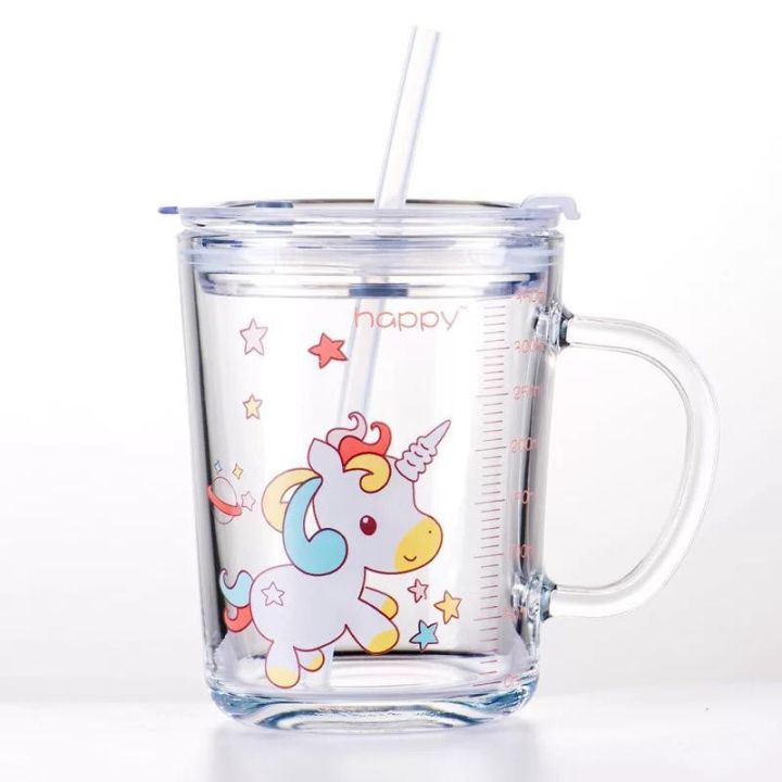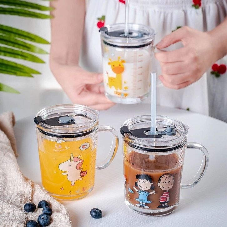 FREE ONGKIR /Mug Gelas Minum KACA Anak Motif Animal 350ML + Sedotan / Gelas Cangkir Kaca