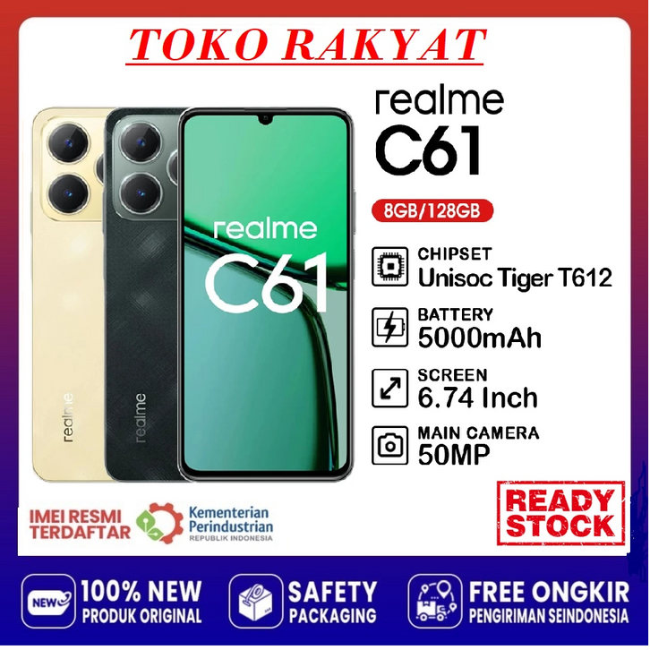 (BEBAS ONGKIR) Hp REALME C61 RAM 8+128GB | Unisoc Tiger T612 | Camera 50MP | Batery 5000mAh