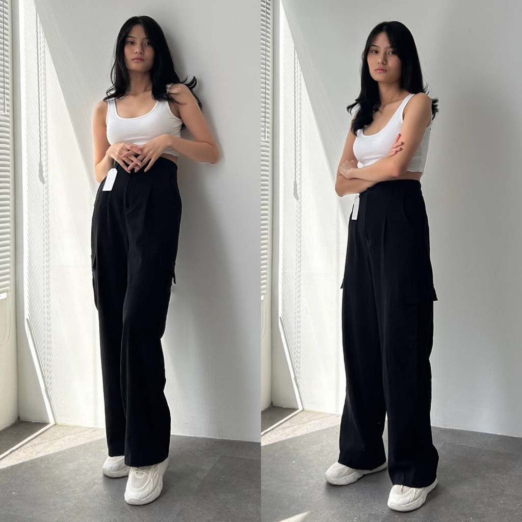 CELANA CARGO HIGHWAIST LOOSE LINEN CRINKLE / CELANA CARGO WANITA / KULOT CARGO HAIGHWAIST WANITA