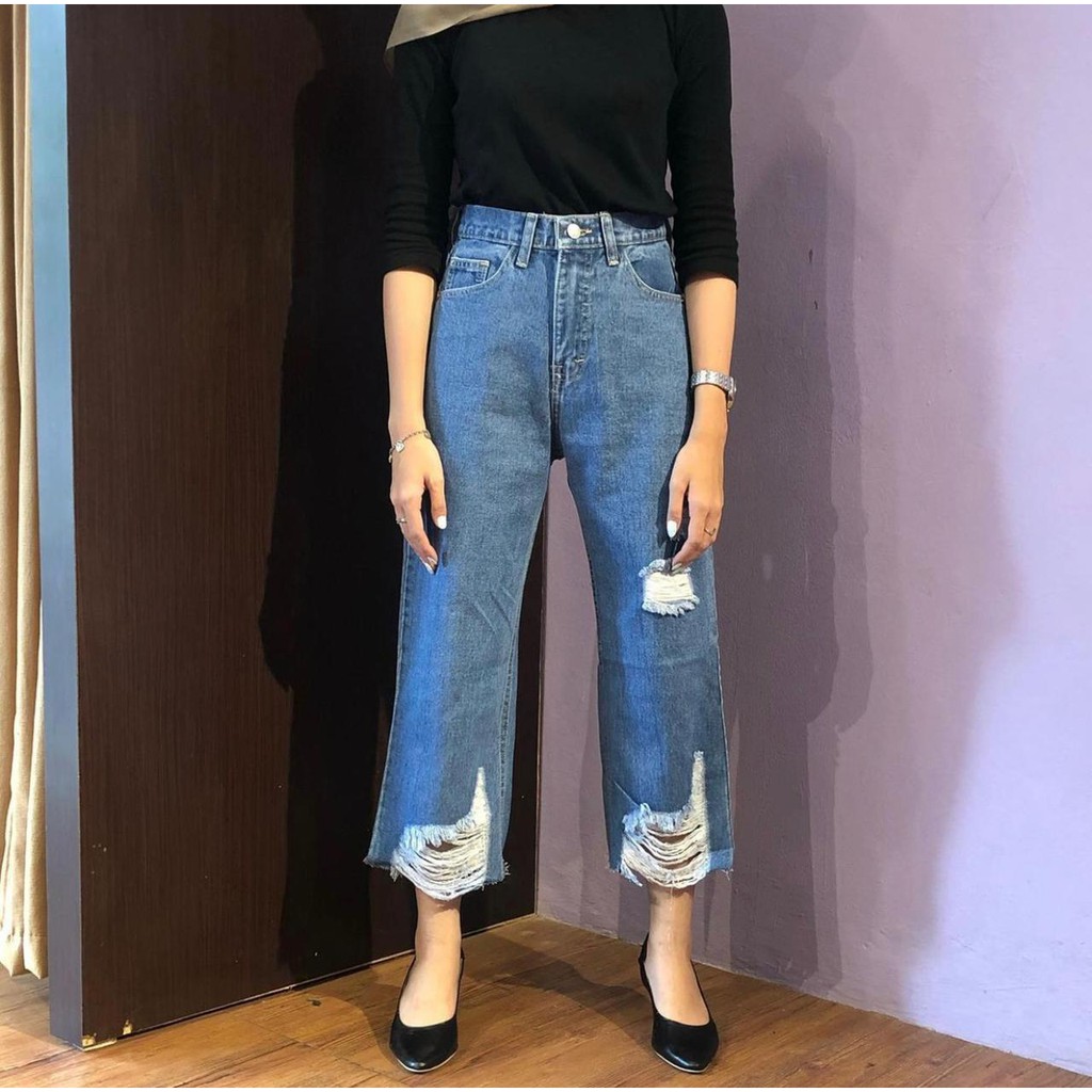 TRIVELA - CHLAUDY CULLOTES JEANS 27-34 JUMBO / CELANA JEANS KULOT RAWIS SOBEK