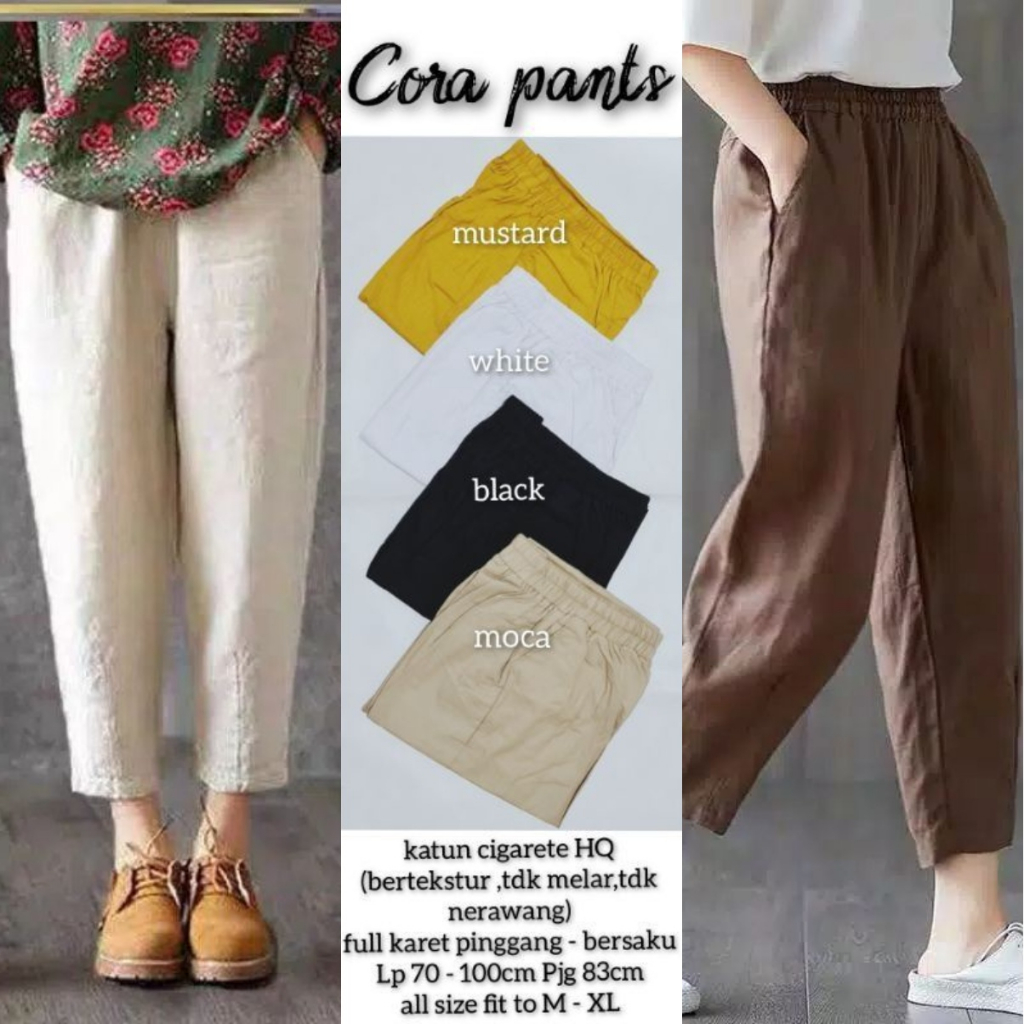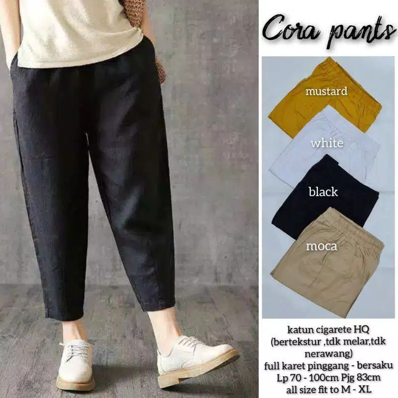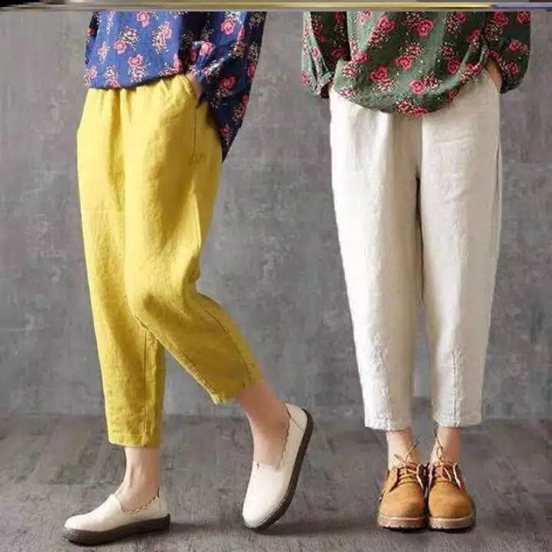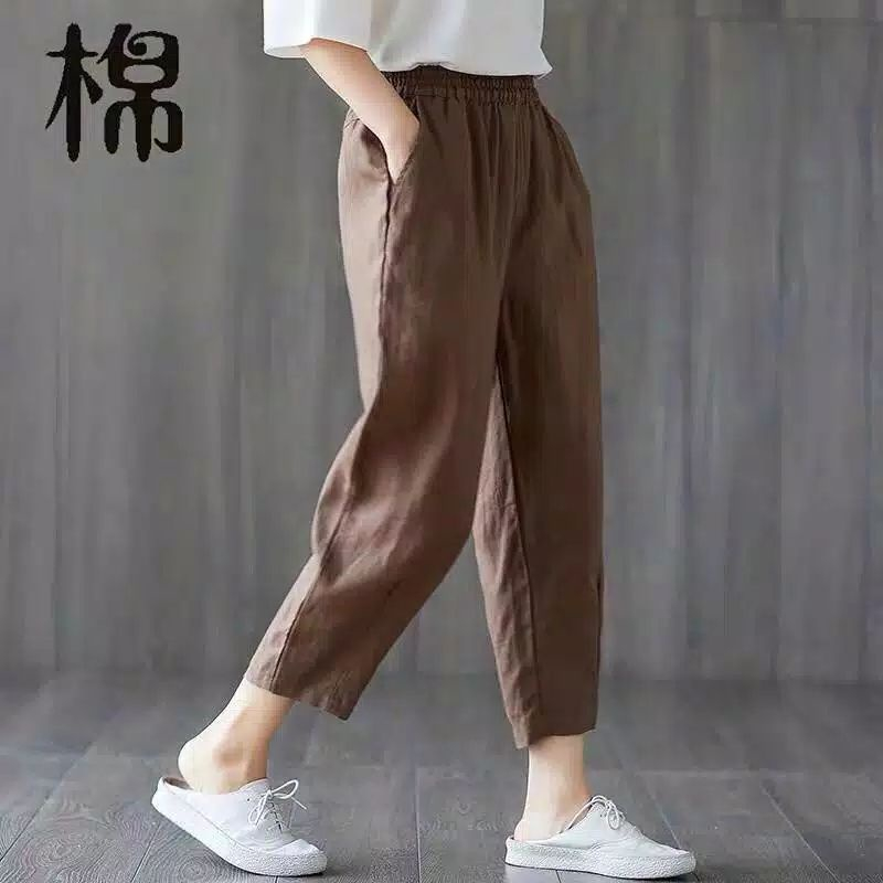 CORA BAGGY PANTS LINEN / CELANA PLAIN BOYFRIEND HAREM SLIM PANJANG WANITA BAHAN KATUN LINEN ORIGINAL