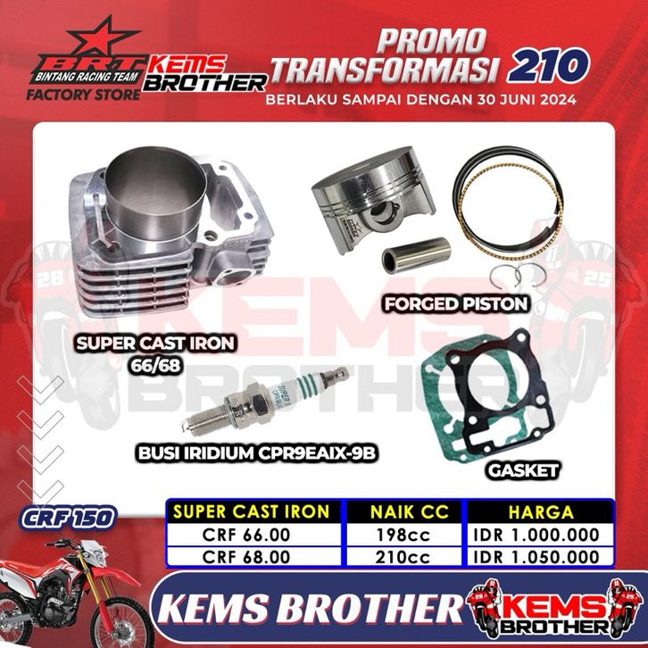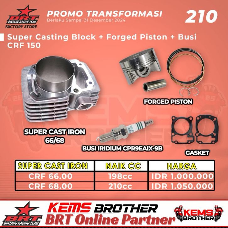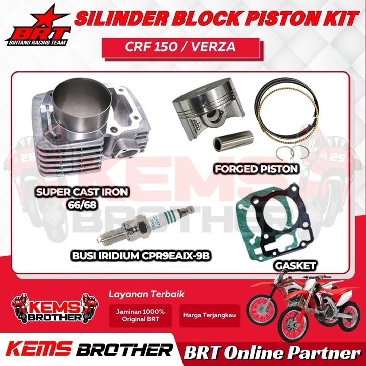 Silinder Blok CRF150 Boreup 198CC-210CC Original BRT Super Cast Iron, Piston Piston Forged 66mm Piston 68mm Coakan