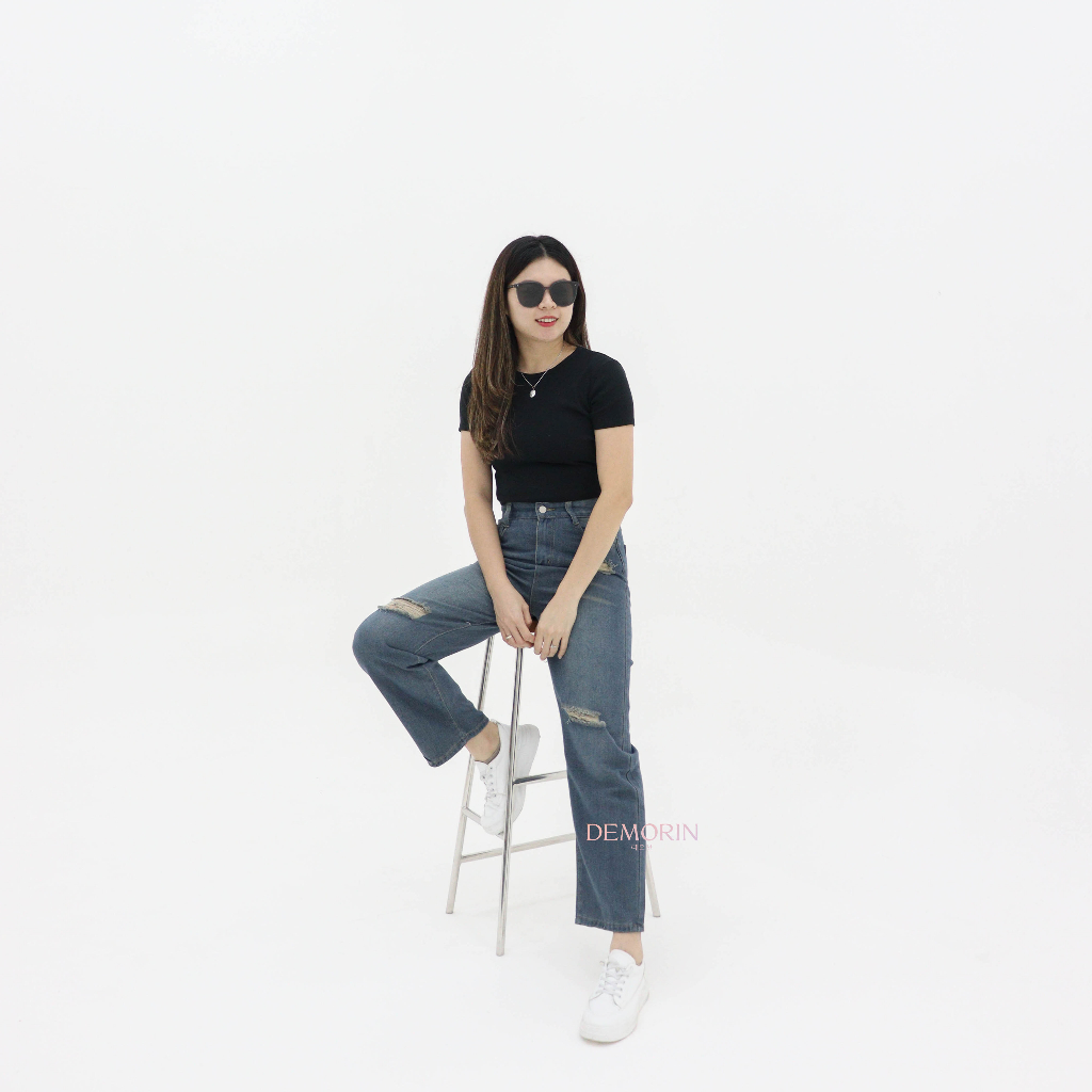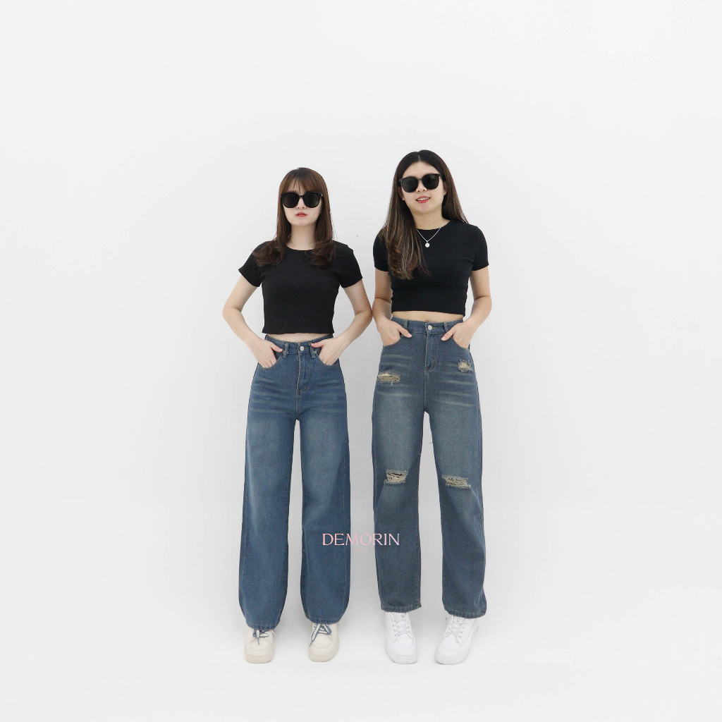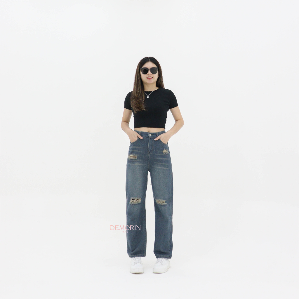 DEMORIN - CELANA JEANS WANITA BAGGY HIGHWAIST RIPPED JEANS - CARMEN X8125