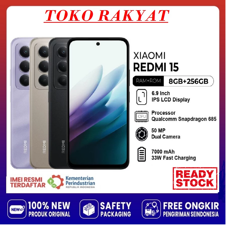 (BEBAS ONGKIR) Hp XIAOMI REDMI 15 RAM 8+256GB | Snapdragon 685 | Camera 50MP | Batery 7000mAh