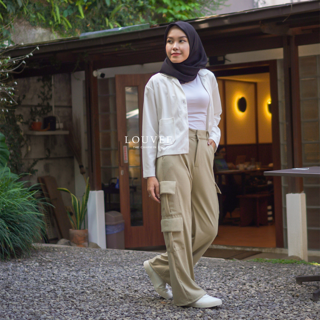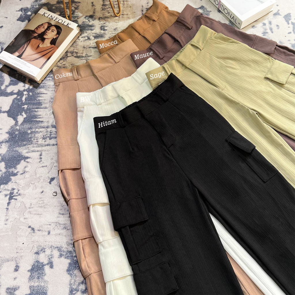 SAERAH - NARA CARGO PANTS - HIGHWAIST LOOSE CARGO KNIT - CELANA CARGO WANITA