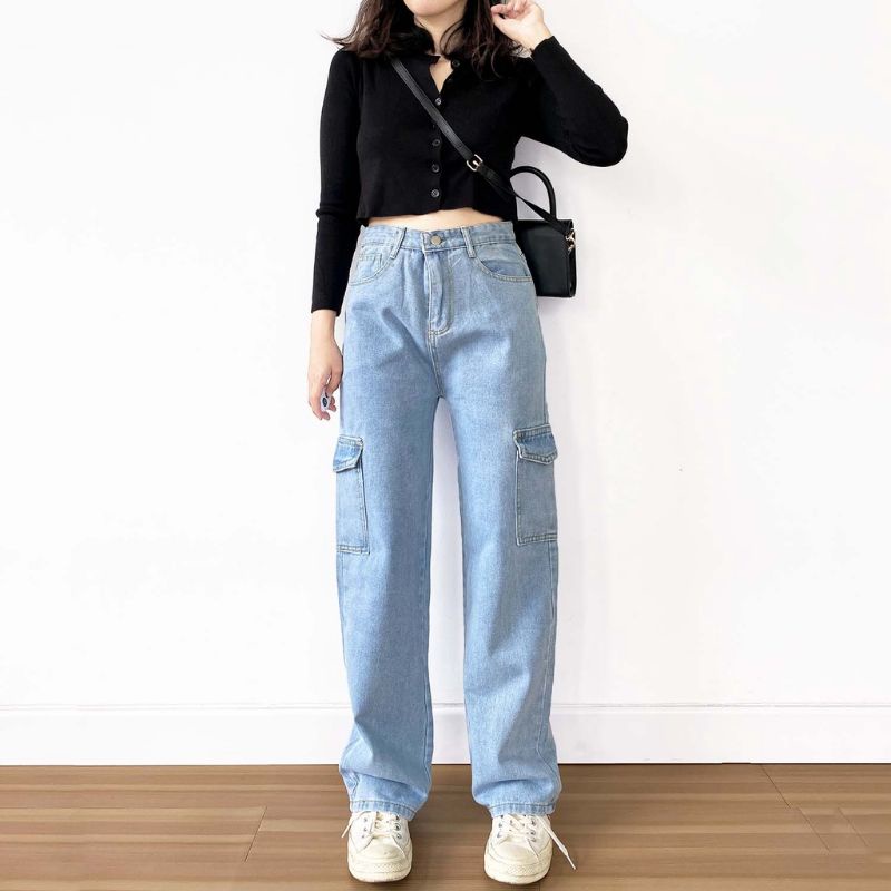 CELANA CARGO JEANS WANITA PREMIUM/CELANA CARGO JEANS