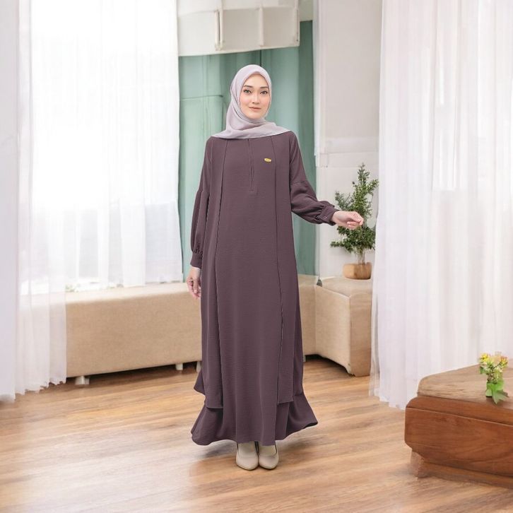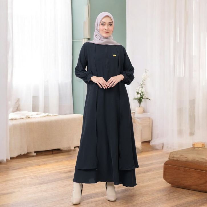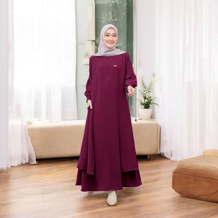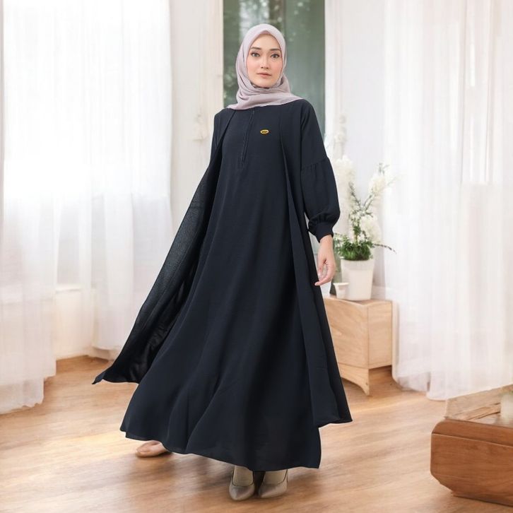 GAMIS WANITA POLOS ZALENKA DRESS MAXI BUSUI FRIENDLY BAHAN TIFANY TWILL BAJU DAILY WEAR PREMIUM CASUAL