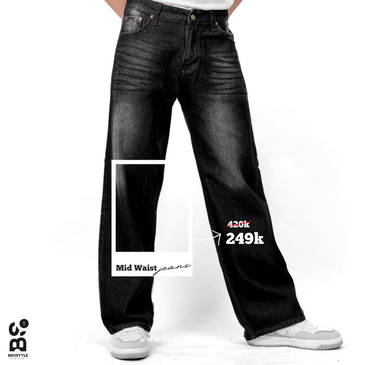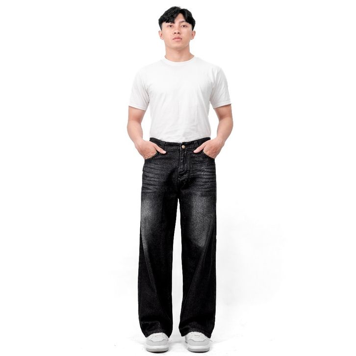 Celana Jeans Wide Leg Wisker Lebar Gombrong Skena Black Wisker pria loose fit jumbo big keren Bahan Denim Gizmo