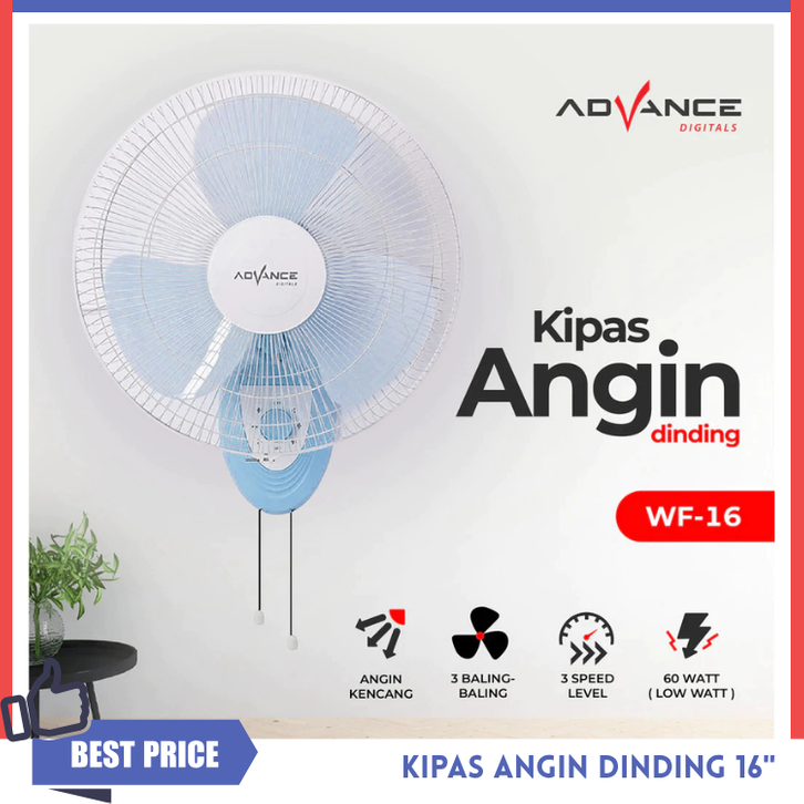 Kipas Angin Dinding Advance 16 Inch WF-16 Tempel Dinding Tembok Wall Fan Murah Ori Warna Estetik Pink Biru