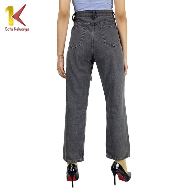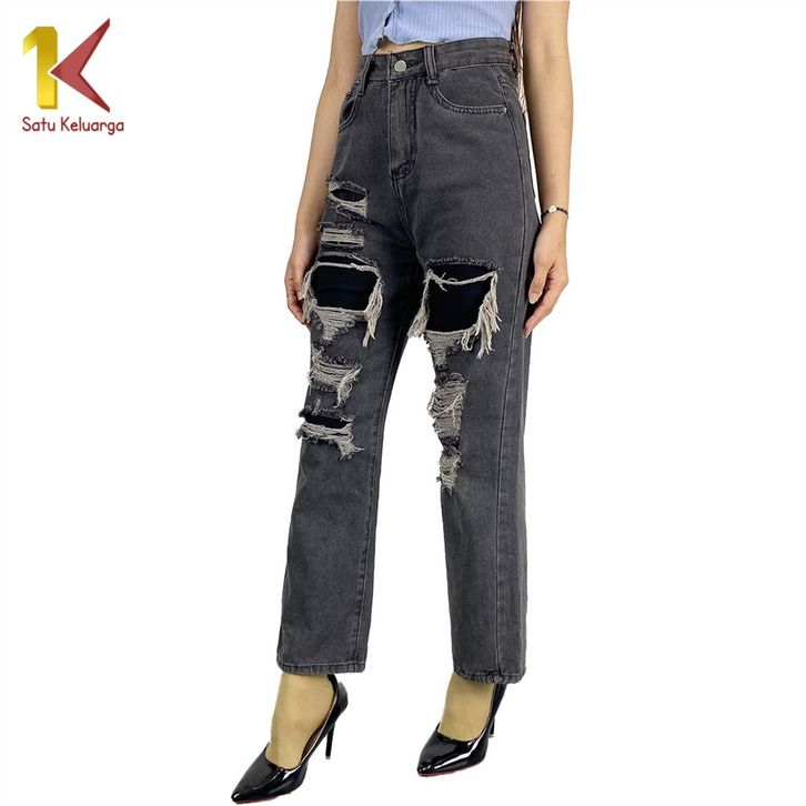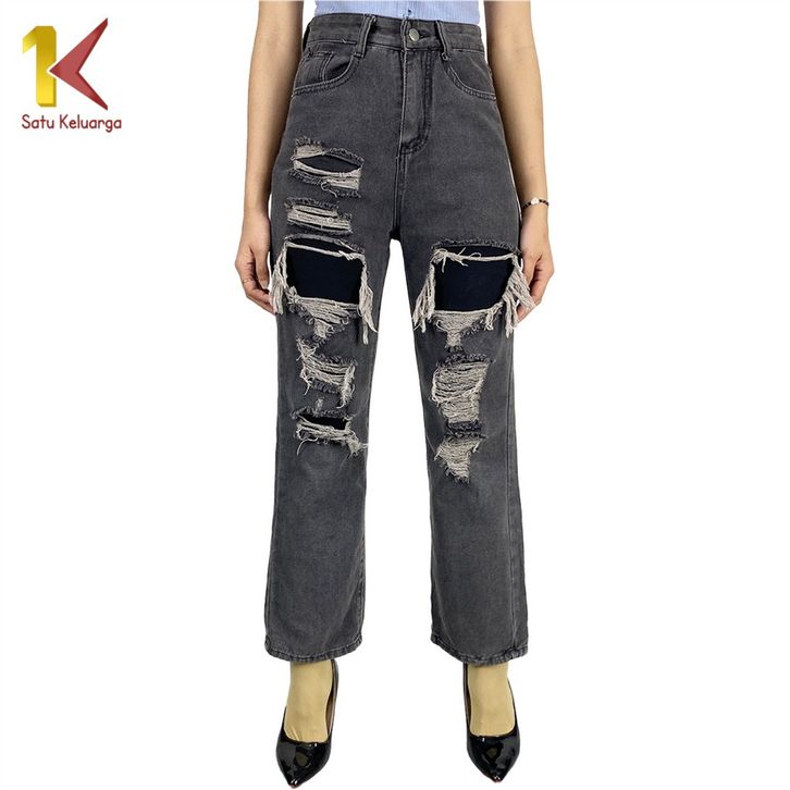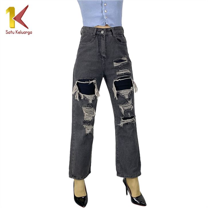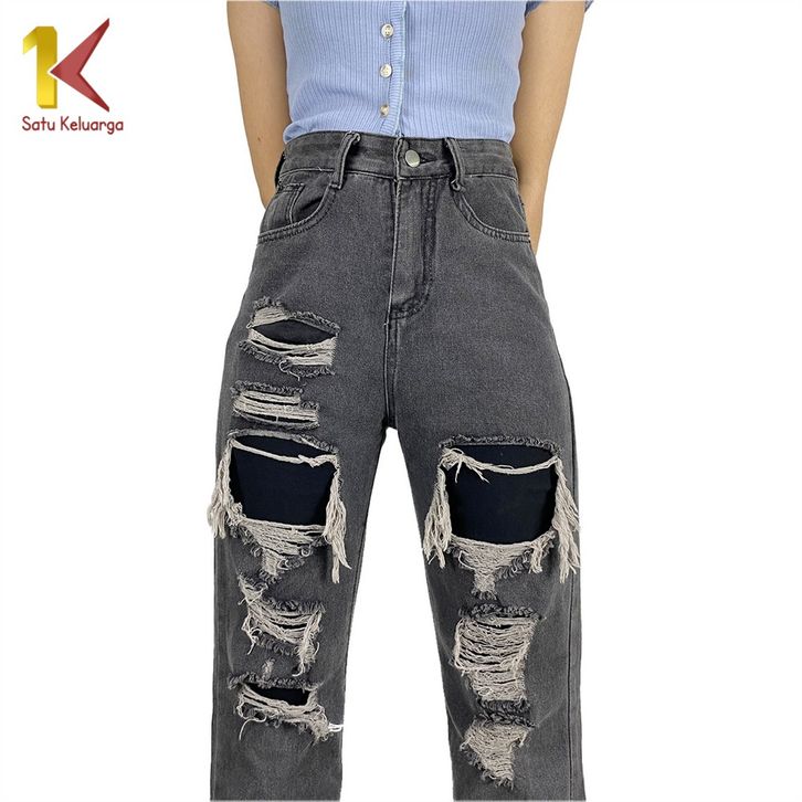 Celana Kulot Panjang Wanita Model Stretch Ripped Jeans Highwaist Celana Denim Women Kekinian 1K P614