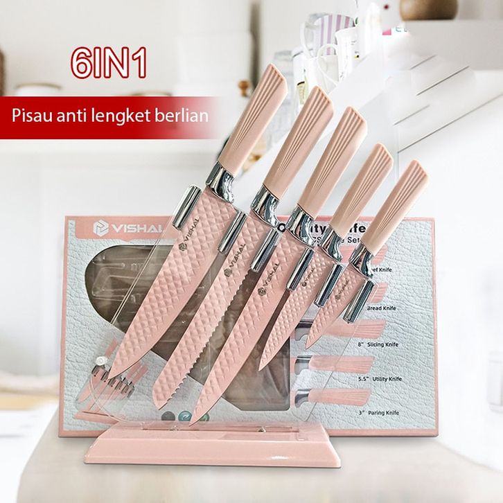 6 Pcs Pisau Set Paling Tajam Cookware Kitchen Knife Set Diamond Non-stick Coating - Original
