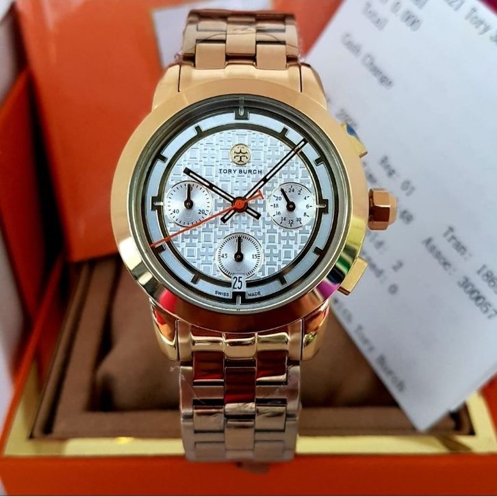 JAM TANGAN WANITA TORY BURCH CHRONO ORIGINAL STRAP ALL STAINLESS STEEL TERLARIS
