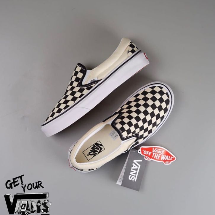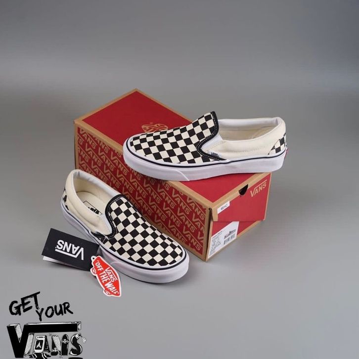 Vans Slip on Checkerboard Classic Black White Sepatu Pria Wanita Unisex Original Bnib