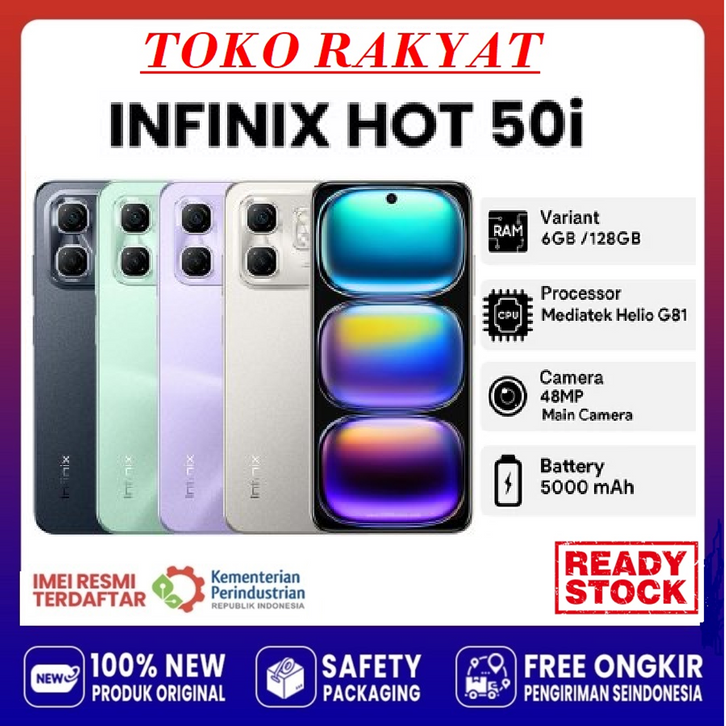 (BEBAS ONGKIR) Hp infinix Hot 50i RAM 6+128GB | Mediatek Helio G81 | Camera 48MP | Batery 5000mAh