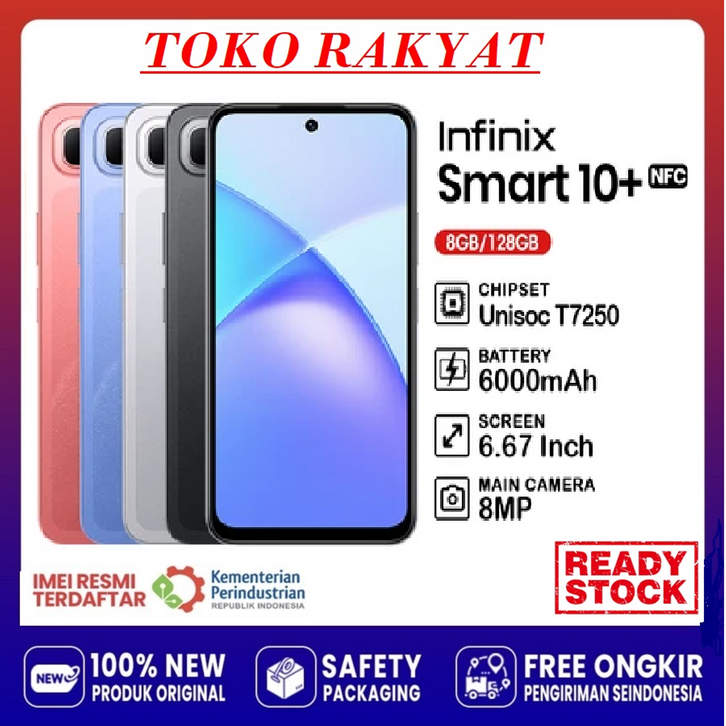 (BEBAS ONGKIR) Hp infinix Smart 10 Plus 8+128GB NFC | Unisoc Tiger T7250 | Camera 8MP | Batery 6000mAh