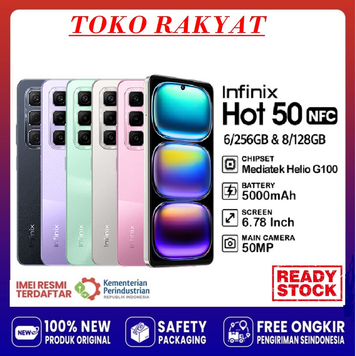 (BEBAS ONGKIR) Hp infinix Hot 50 4G 8+128GB Nfc | Mediatek Helio G99 | Camera 50MP | Batery 5000mAh