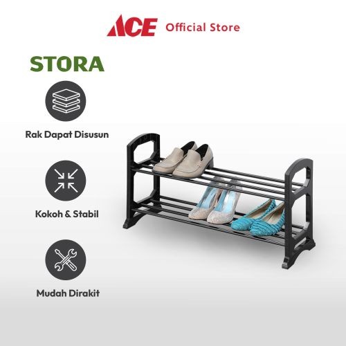 ACE - STORA RAK SEPATU STACKABLE 2 TINGKAT - HITAM