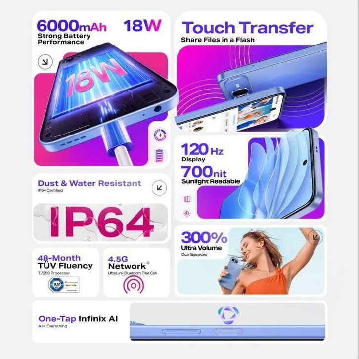 [Star] Infinix Smart 10 Plus 8/128 GB | Smart 10 4/128GB – Up to 8 GB Extended RAM – 6.67″ 120 Hz