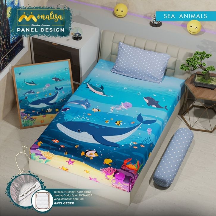 Sprei Monalisa Panel motif Karakter Batman,Stitch Doll,Minion,Sea Animals Ukuran 180x200 dan 160x200