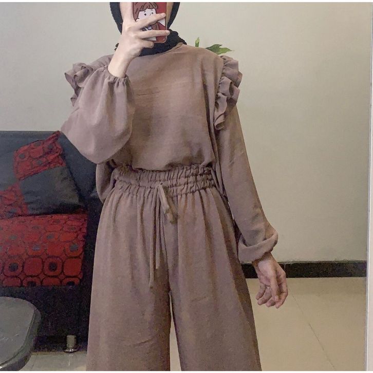 ONE SET | SETELAN KULOT CREPE | OOTD WANITA MUSLIM TERKINI | SETELAN BLOUSE & CELANA KULOT