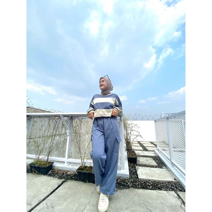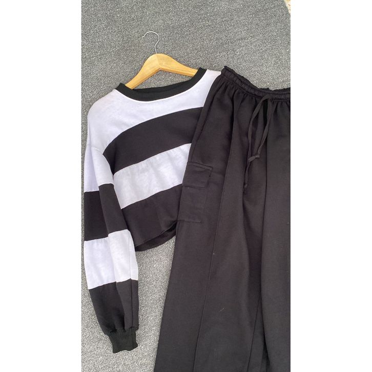 SWEATER WANITA BAJU ONE SET CEWE BUNDLING POCKY SWEATER CROP MIX JOLLY PANTS TERBARU CREWNECK COMBI MIX CARGO PANTS