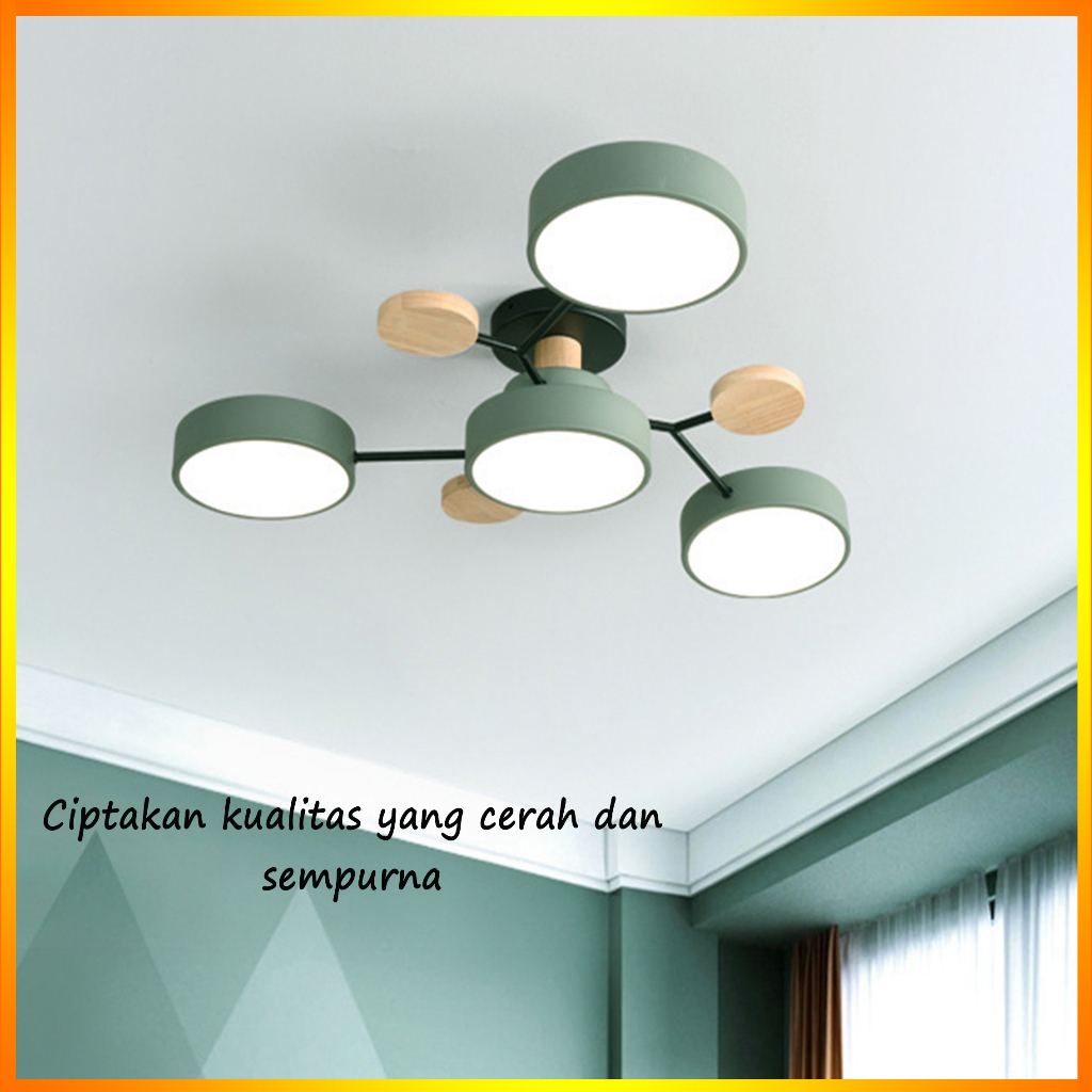 Lampu Gantung Led 3 Warna Nordic Modern Minimalis Gaya Ruang Tamu Dapur Bola Kayu