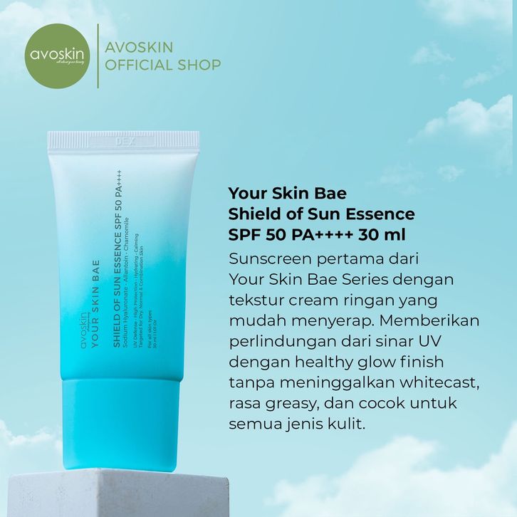 SKINCARE PENCERAH WAJAH SUNSCREEN AVOSKIN YOUR SKIN BAE SHIELD OF SUN SPF 50 PA++++ 30ML PELINDUNG PERAWATAN WAJAH SEHAT