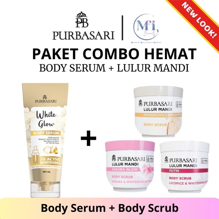 Purbasari White Glow Body Serum 180ml Lulur Mandi 100gr 200gr Paket Hemat
