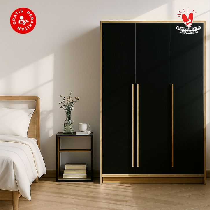 LEMARI PAKAIAN BAJU HITAM MINIMALIS 3 PINTU TERMURAH
