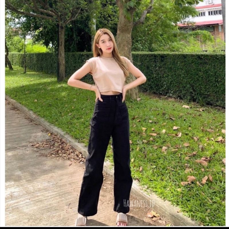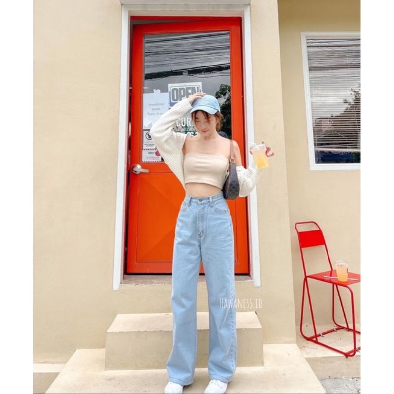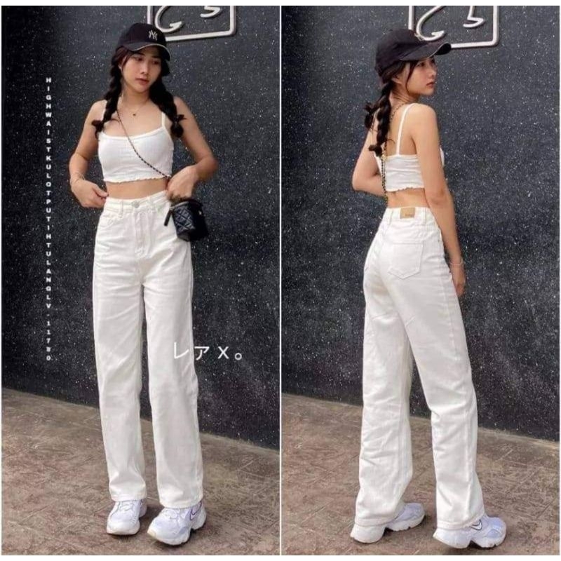 celana jeans wanita Higtwaist loose jeans tebal 13 oz