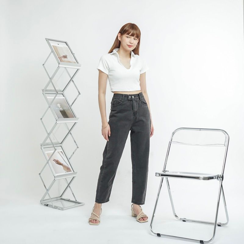 celana wanita TheGirlHouse - IVORY HIGHWAIST BOYFRIEND