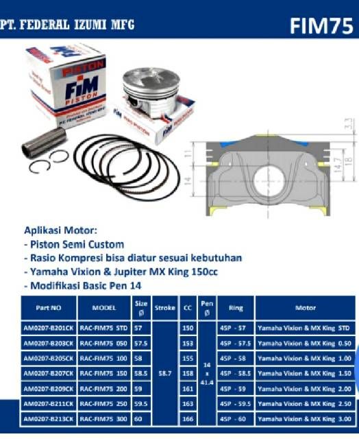 Piston kit FIM Vixion MX King Boreup Jupiter MX el Dome Semi Custom Pen Pin 14 DM 57 575 58 585 59 595 60 mm