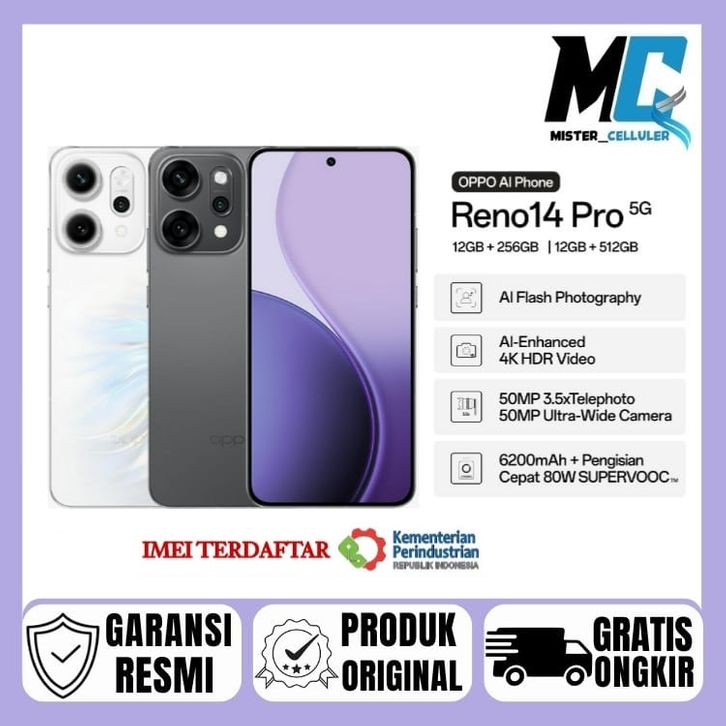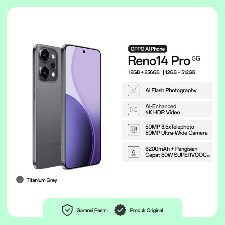 OPPO RENO 14 PRO 5G RAM 12/512GB GARANSI RESMI | READY STOK OPPO RENO 14 OPPO RENO 13 OPPO RENO 12 OPPO RENO 11 PRO