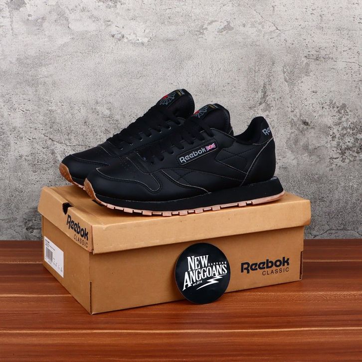 Sepatu Reebok Classic Leather kulit Full All Black Hitam