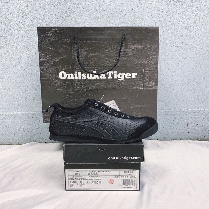 Sepatu Onitsuka Tiger Slip On Leather Black Free Paperbag