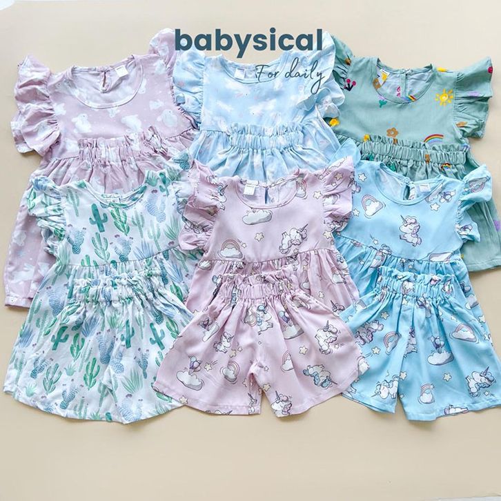 Dress Anak Babysical 1-6 Tahun Bonia Set - Set Baju Anak Perempuan Lucu Rayon Setelan Baju Anak Perempuan Dress Celana
