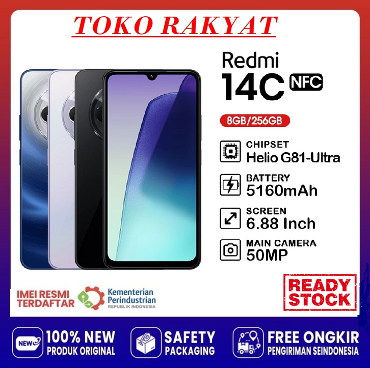 (BEBAS ONGKIR) Hp XIAOMI REDMI 14C RAM 8+256GB | Mediatek Helio G81 Ultra | Camera 50MP | Batery 5160mAh