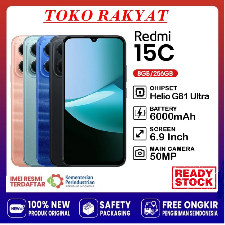 (BEBAS ONGKIR) Hp XIAOMI REDMI 15C RAM 8+256GB | Mediatek Helio G81 Ultra | Camera 50MP | Batery 6000mAh