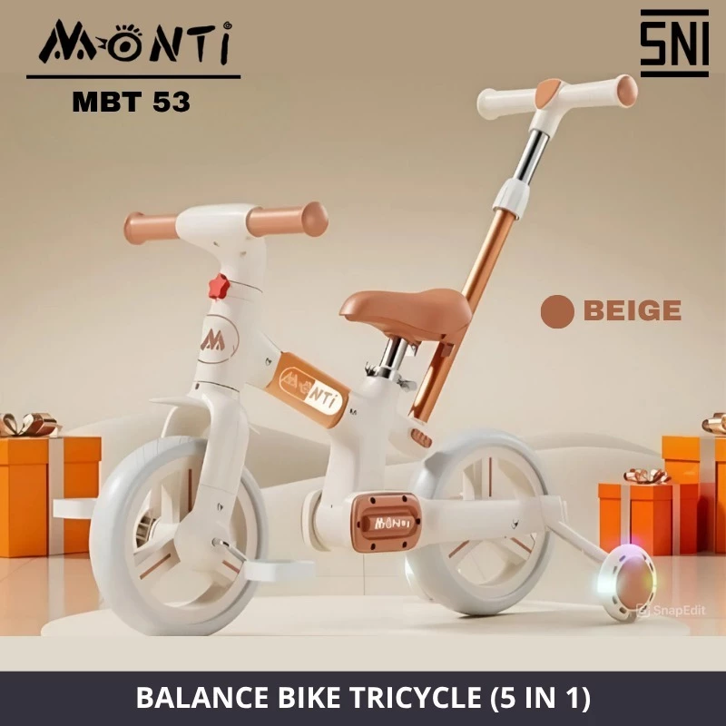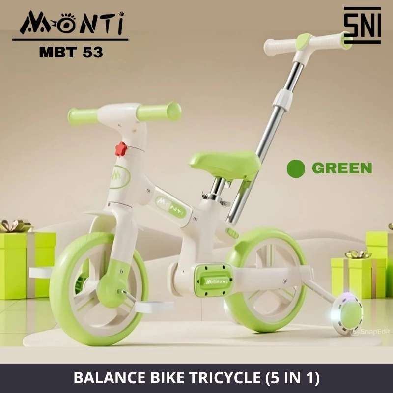 Monti Sepeda Anak Roda 2 Tricycle Balance Bike 5in1 Original MBT 53 - Sepeda Keseimbangan Pink Green Beige SNI