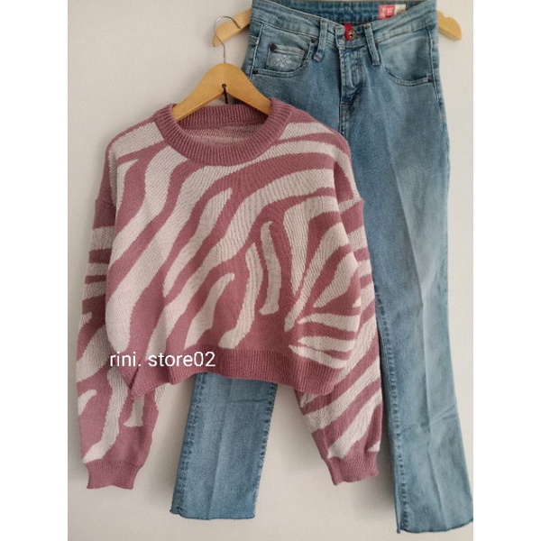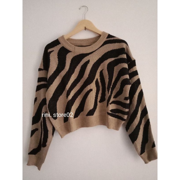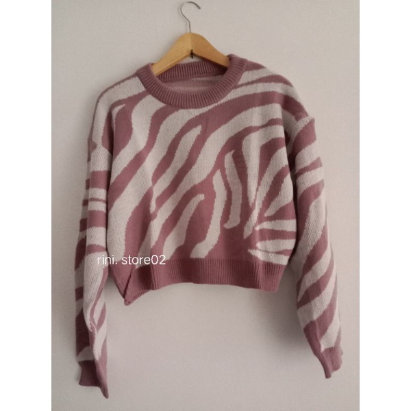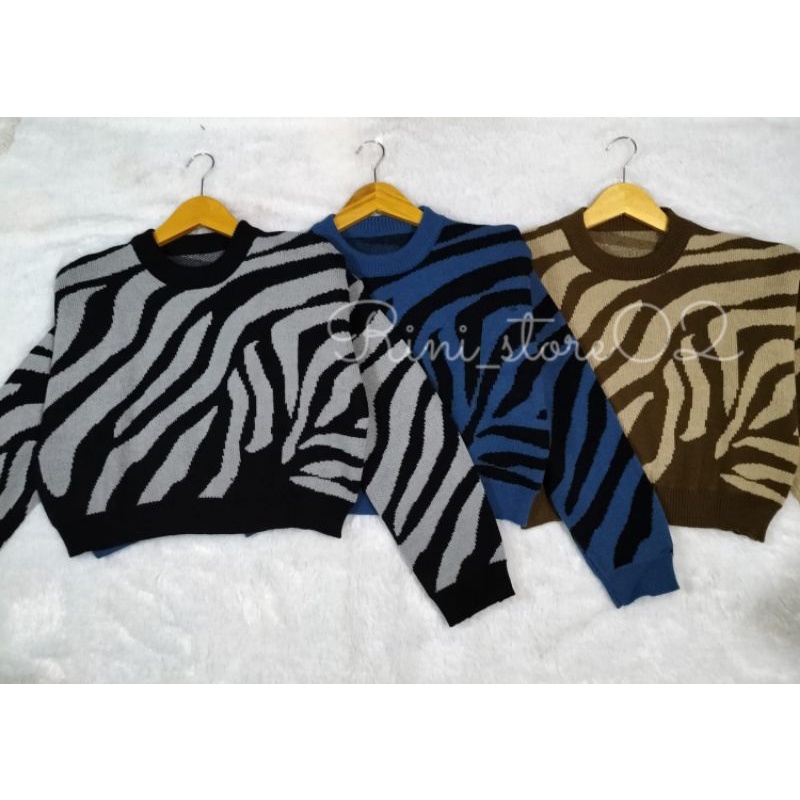 CREWNECK ZEBRA / SWEATER CROP KOREA RAJUT LEMBUT | BLOUSE / ATASAN IMFORT MOTIF ZEBRA