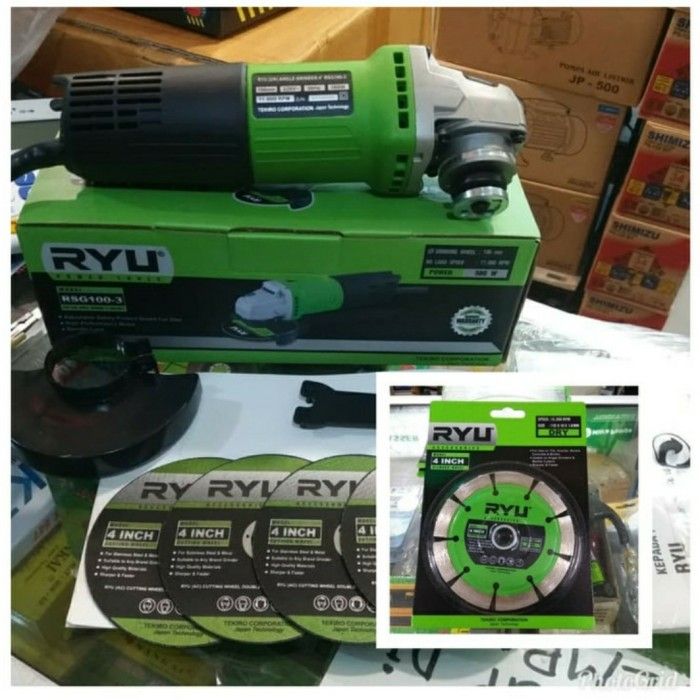 PAKET MESIN GERINDA TANGAN RYU RSG 100-3 MATA POTONG KERAMIK RYU -
