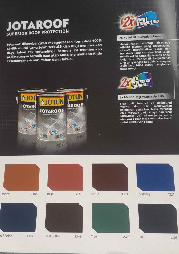 FREE ONGKIR! CAT GENTENG JOTAROOF JOTUN 2,5 LITER / SUPERIOR ROOF PROTECTION / CAT ATAP