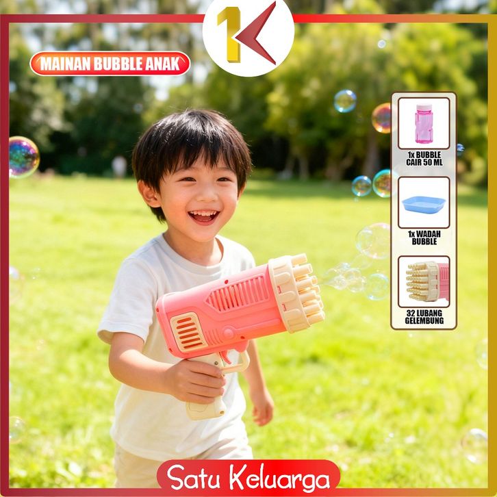 SK-M348 Mainan Anak Bubble Gun 32 Lubang Balon Gelembung Sabun Maenan Gelembung Air Sabun