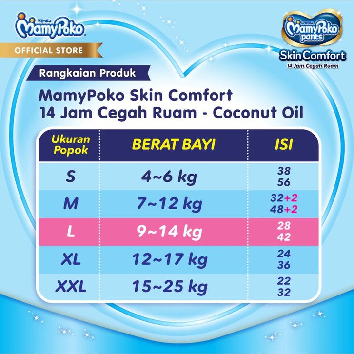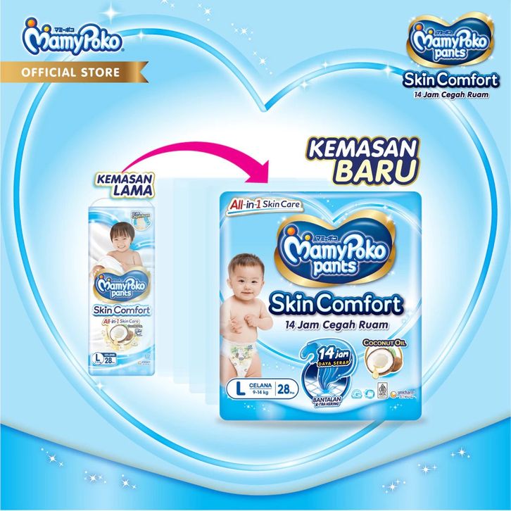 Pamper Mamypoko Pants Skin Comfort Tipe Celana S38 M32 L28 XL24 Popok Bayi Isi 4 FREE ONGKIR
