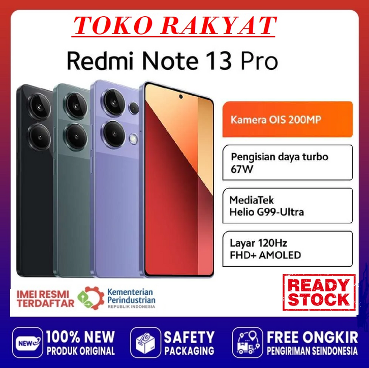 (BEBAS ONGKIR) Xiaomi Redmi Note 13 Pro 4G 8+256GB | Mediatek Helio G99 Ultra | Camera 200MP | Batery 5000mAh